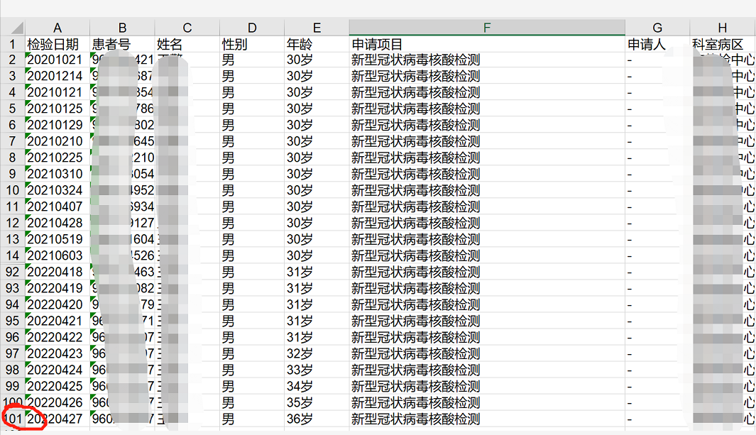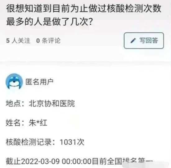 里、有没有发烧、码是不是绿色?前两天看到一个截图,说是全球做核酸次数最多的人,