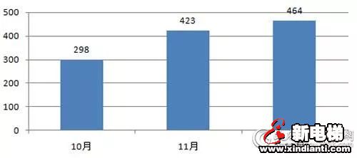12月,全国共完成保障房电梯采购项目28个,采购规模约1.74亿元,位居细分市场第一位;全国共完成政府机关电梯采购项目128个,采购规模约1.69亿元,位居细分市场第二位;医院和学校则分别完成1.15亿元和0.91亿元,分列第三位和第四位。