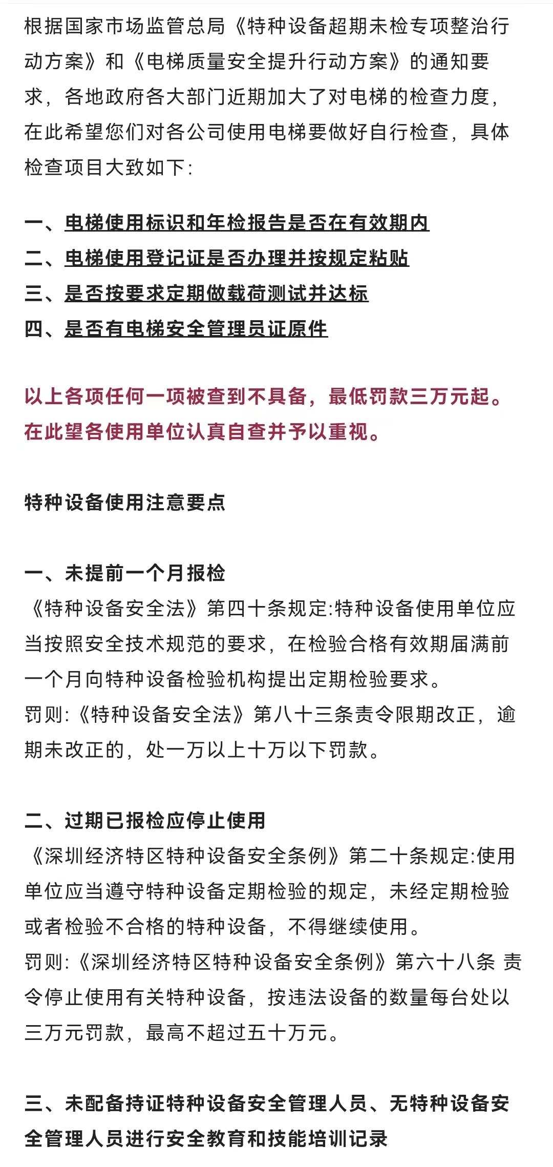 电梯大检查:一项被查到不具备,罚款3万起