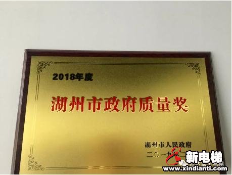 (上图:恒达富士电梯有限公司荣膺2018年度湖州市政府质量奖牌匾)