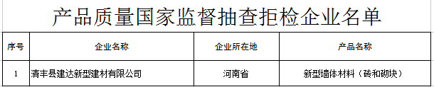 在本次抽查中,河南省濮阳市清丰县建达新型建材有限公司违反《中华人民共和国产品质量