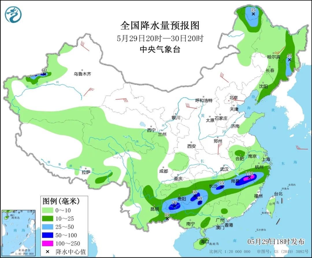 今日天气:浙江中南部、江西北部、湖南中部、贵州南部、广西北部、云南东部以及内蒙古东北部、黑龙江西北部和东南部、吉林东部、新疆南疆西部等地的部分地区有大到暴雨,其中,江西东北部、浙江西部、福建西北部等地局地有大暴雨。