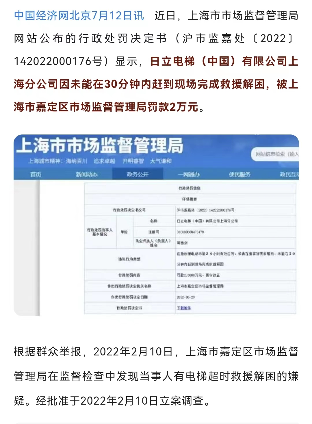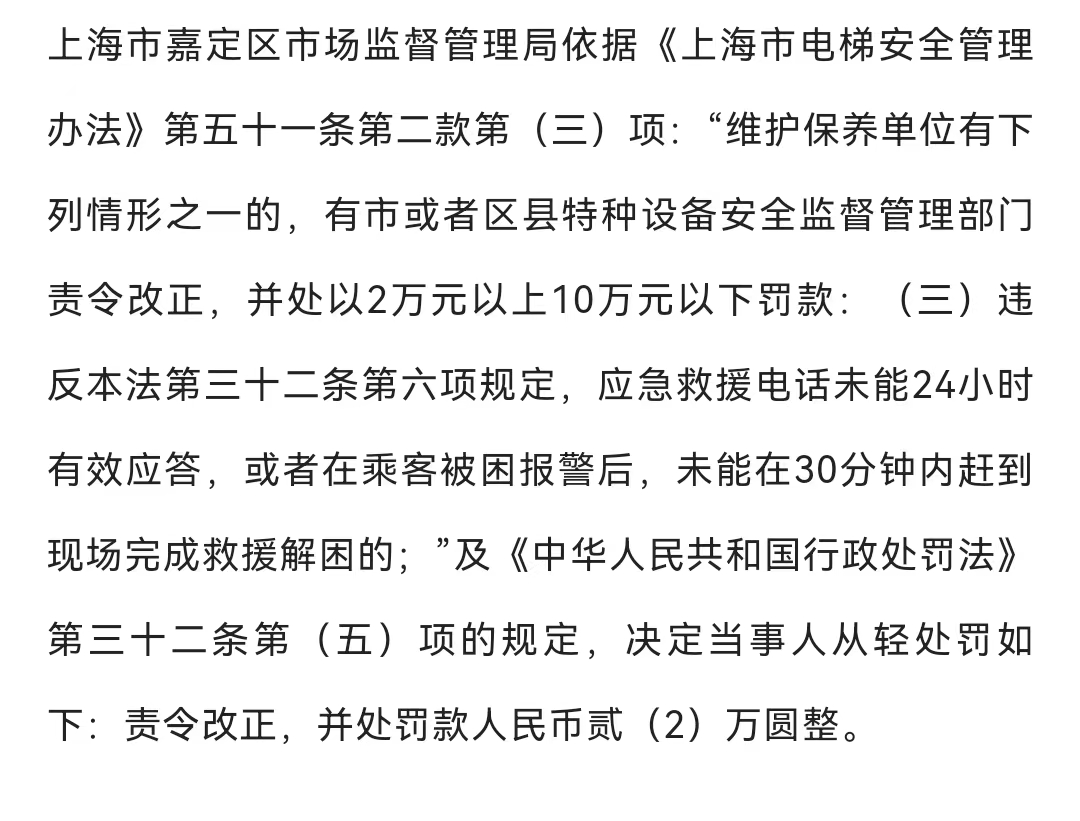 维保员接急救电话37分后到达现场,电梯公司被罚
