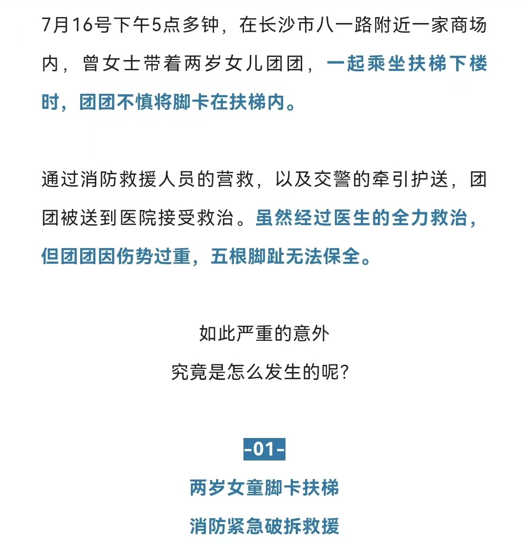 两岁女童商场扶梯卡脚,痛失五趾!