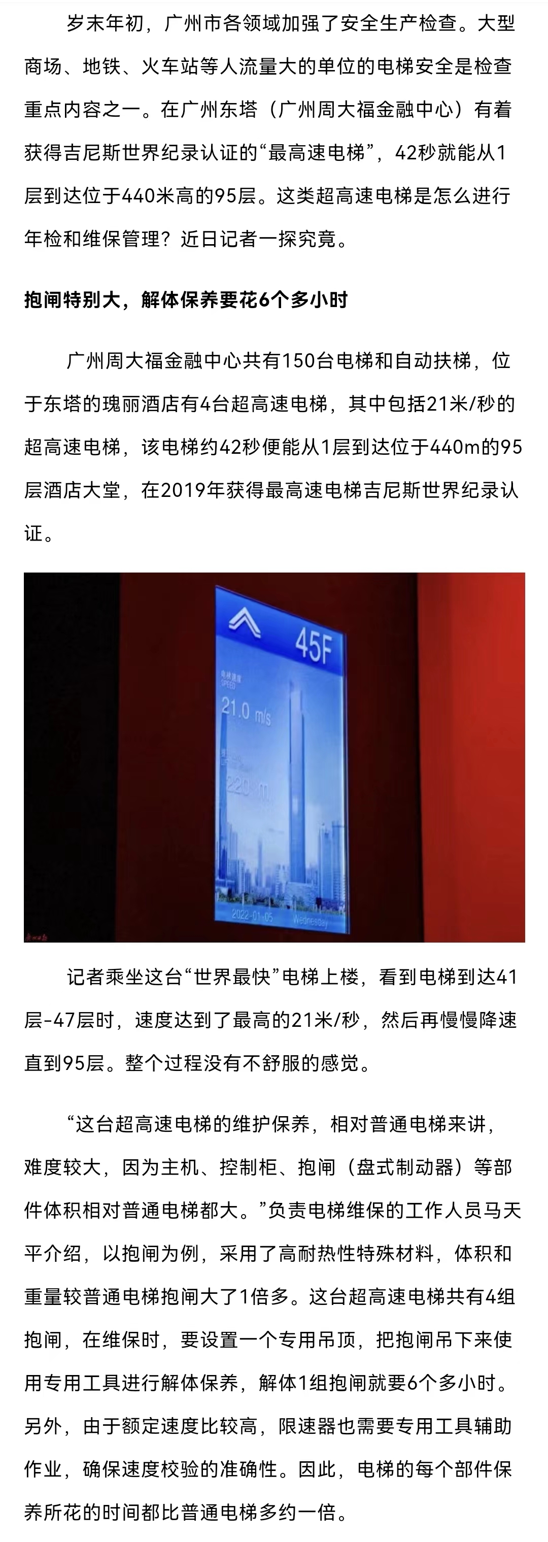 超高速电梯抱闸超大,解体保养要花6个多小时