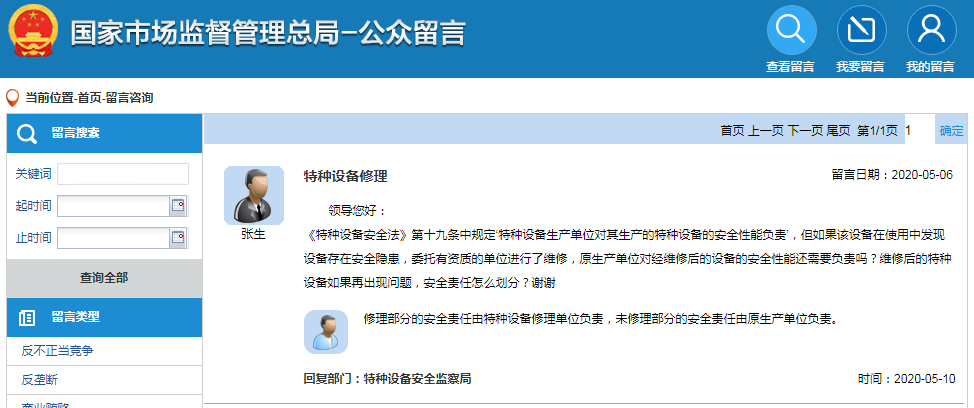 总局回复:电梯修复后又出问题,责任这样划分