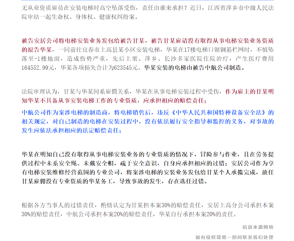 雇佣无资质电梯安装工,雇主和电梯制造商均担