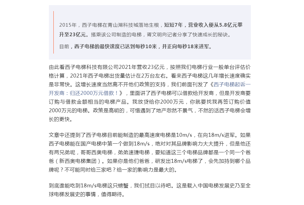 西子电梯进军18m/s速度电梯!