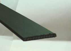 钢带的结构十分简洁,但是实际上,与负载能力相同的钢丝绳相比,它含有更多股数的钢丝。为了保证大载重轿厢的情况下具有足够的牵引力,在原来钢带的基础上增加了一倍的钢丝股数,钢带宽度也增加了一倍。当载重小于1150公斤时,每条钢带包含12条钢绳,每条7股,每股7根钢丝,所以,钢带中一共有588根高拉伸强度钢丝;当载重大于等于1150公斤时,每条钢带包含24条钢绳,每条7股,每股7根钢丝,所以,钢带中一共有1176根高拉伸强度钢丝。更多股数的高拉伸力钢丝可以达到更高的安全系数。